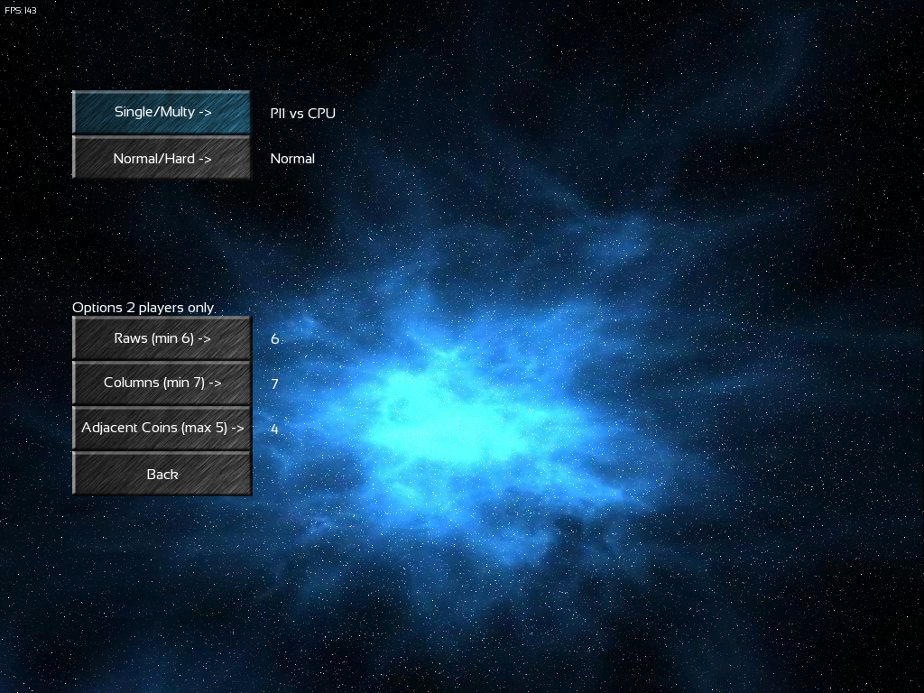 E’ possibile giocare partite a due giocatori 1 vs 1 (sullo stesso PC) oppure in singolo contro la CPU. C4TL è interamente programmato in C++ sfruttando le Simple and Fast Multimedia Library (SFML) nella loro versione 2.3.2 e uno shader per le animazioni dello sfondo. L’ho programmato interamente sfruttando alcune classi e l’impostazione di base del libro “SFML Game Development” di Moreira, Hansson, Haller”, inserendo il mio gioco quasi “accanto al loro” di cui sono rimaste tracce nel codice. L’intelligenza artificiale usa l’algoritmo minimax, con un criterio per dare il giusto valore alle determinate mosse. Ad esempio, ho valutato meno i casi in cui le terne di monete adiacenti sono chiuse ai lati (e non possono portare a vincere la partita) rispetto a quelle libere. Nella modalità a due giocatori è possibile estendere la griglia aumentando numero di righe e colonne, oppure il numero di monete adiacenti necessarie per vincere.